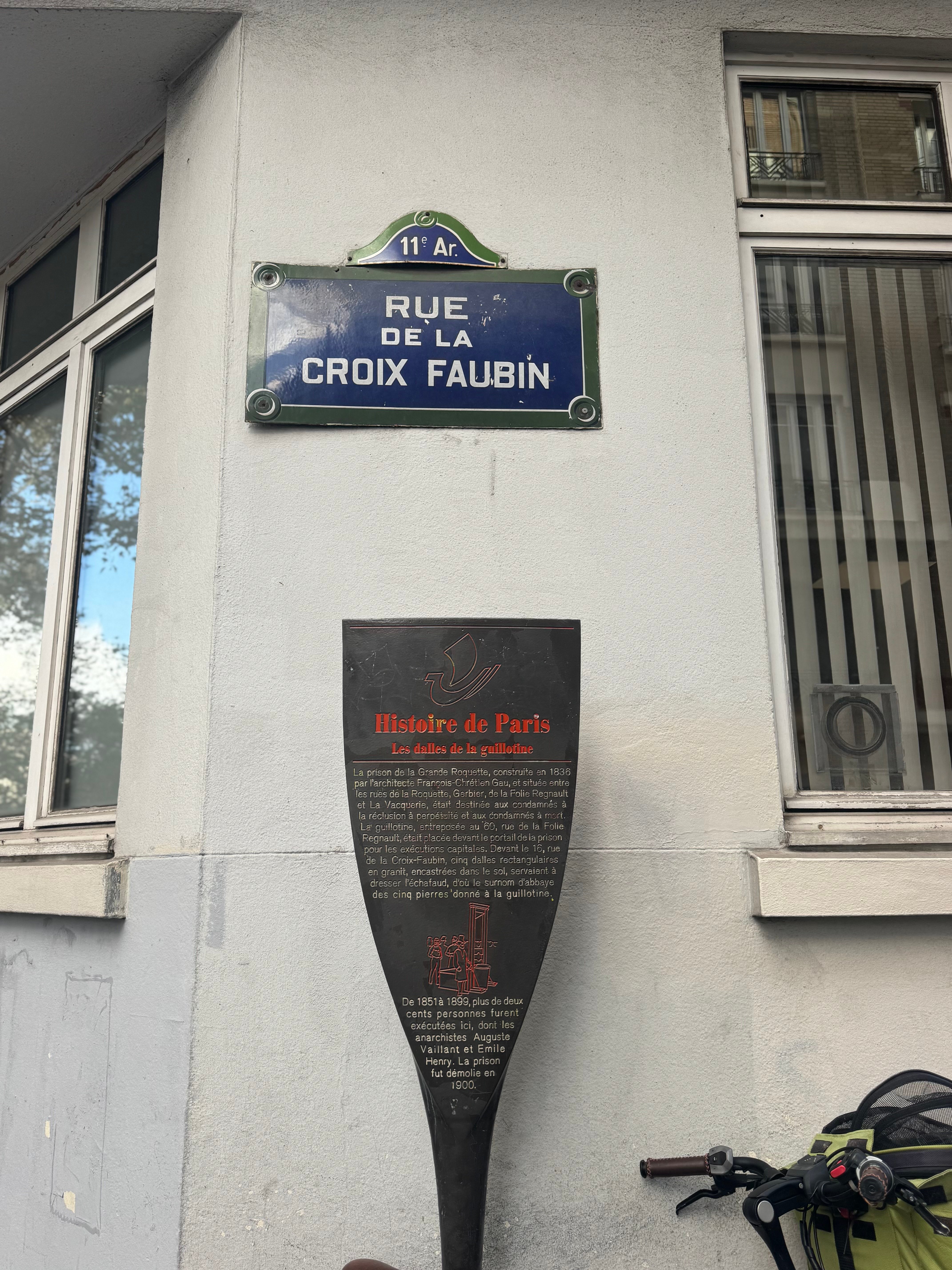 📍Guillotine traces : Corner of rue de la Croix-Faubin and la rue de la Roquette 75011