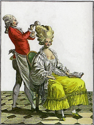 Marie-Antoinette hesitated a brief moment at the bold hairstyle that must be, she cried, a yard high. But she was delighted. When Léonard’s partner heard that the coiffure rose forty inches from the bottom of her chin, he thought they’d be sent to the Bastille. Instead of prison, their fortune was made.
